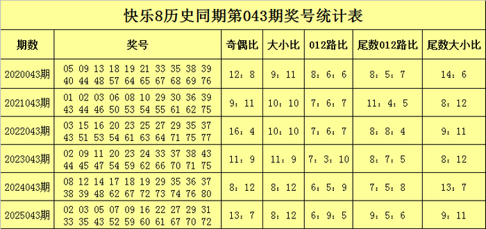 沧海快乐8第2026043期历史同期奖号尾数分析